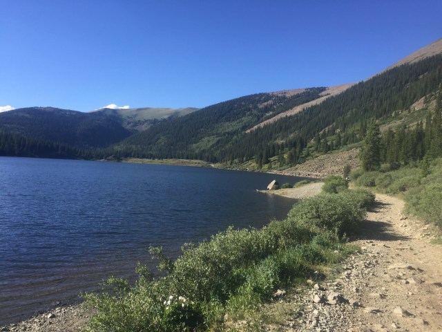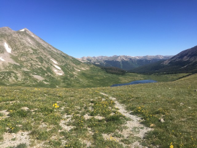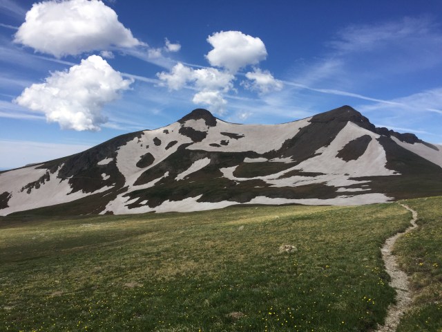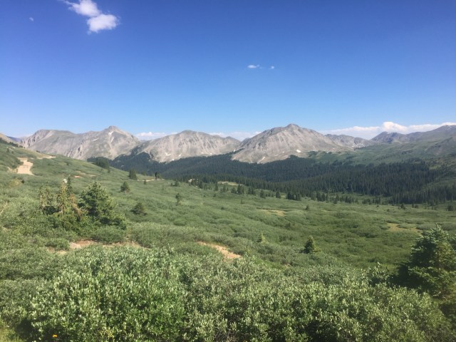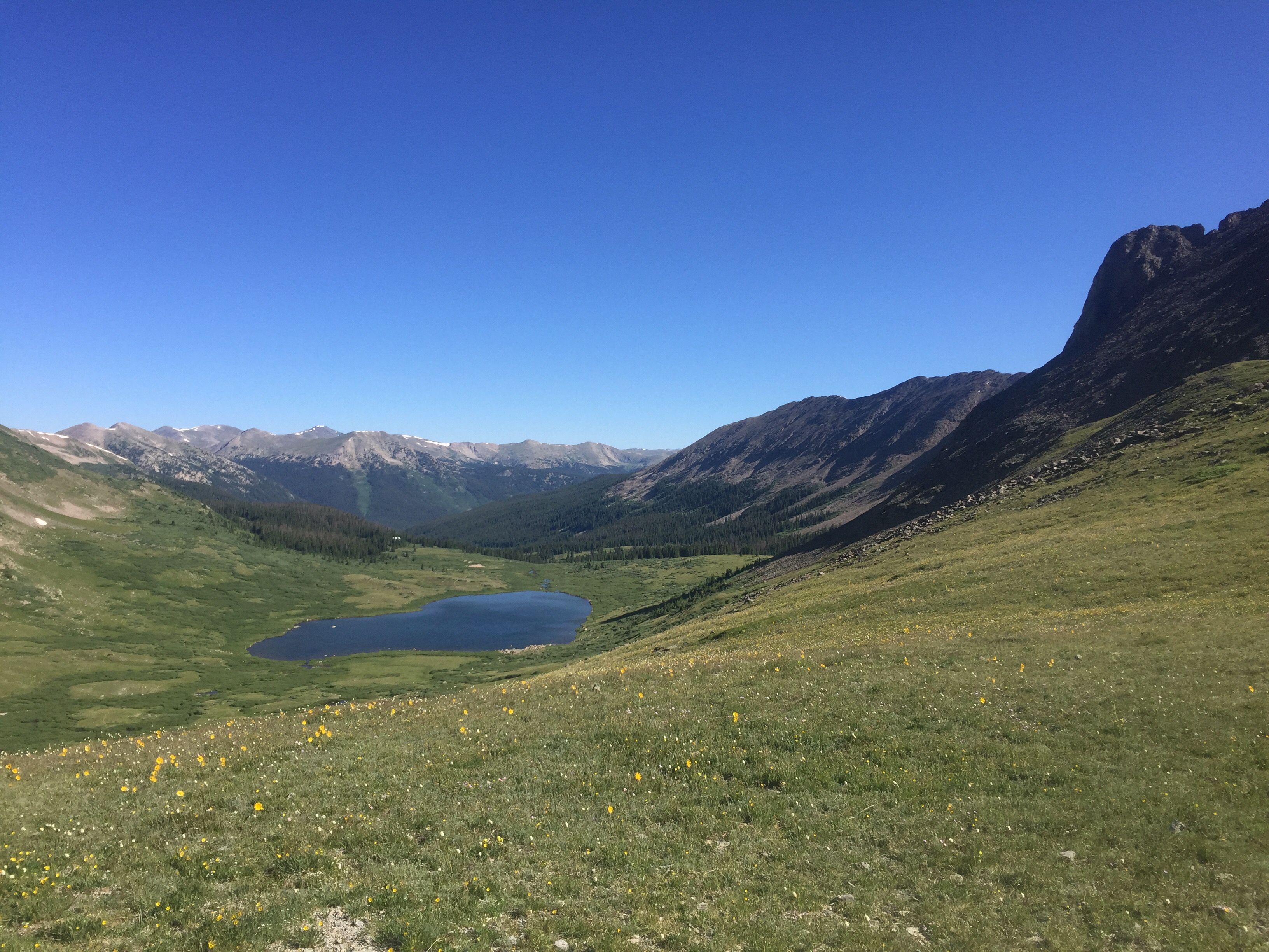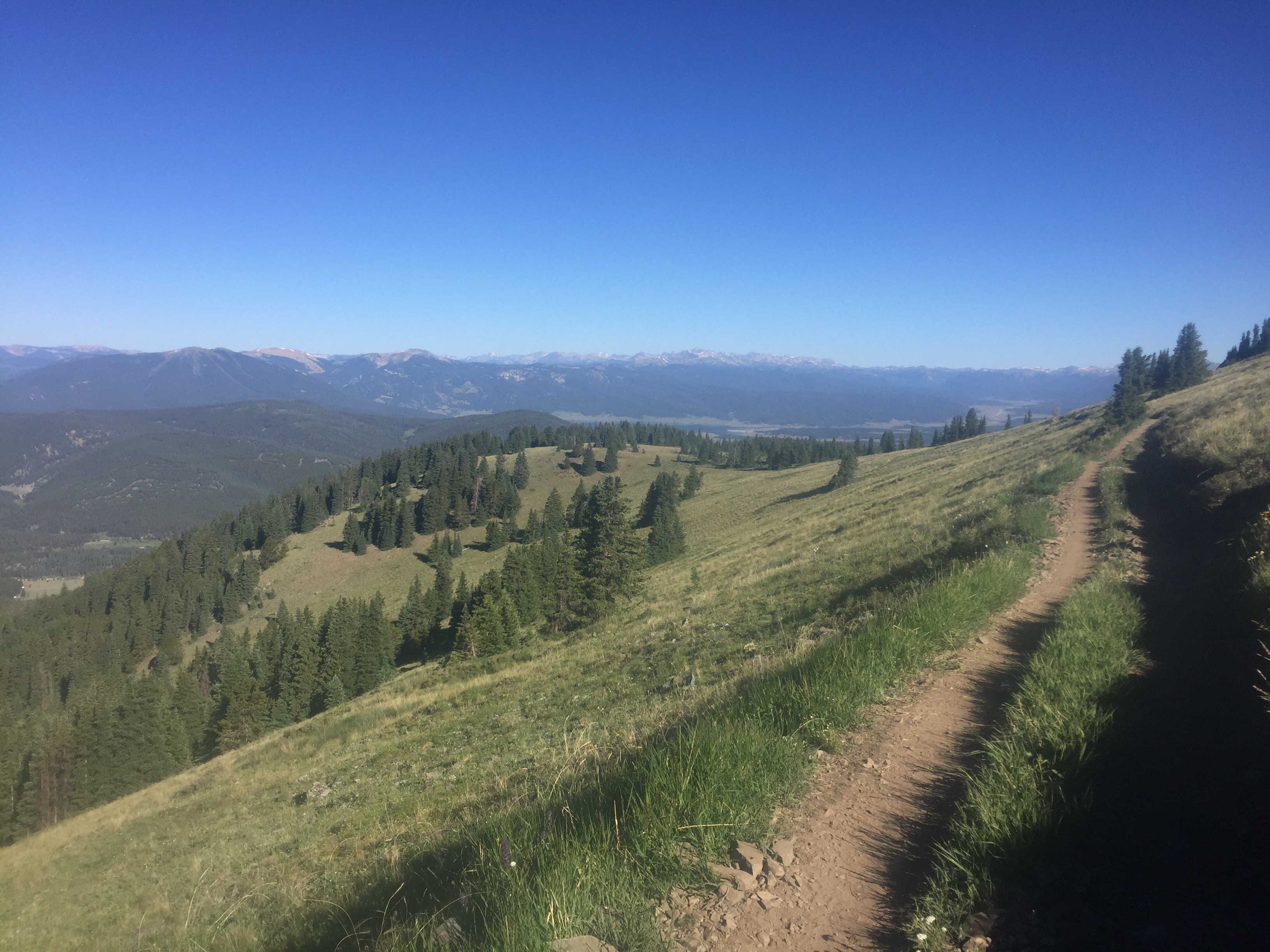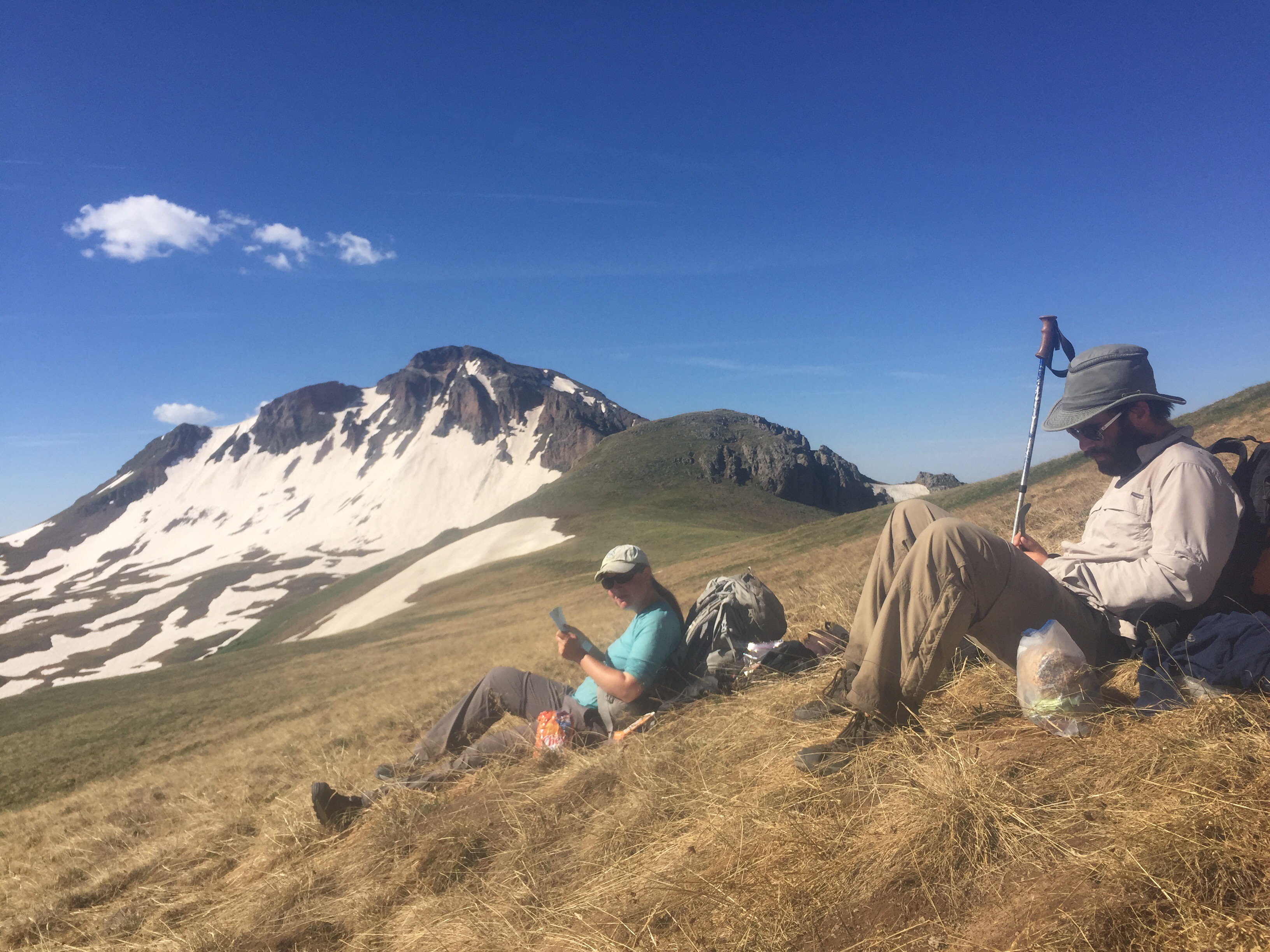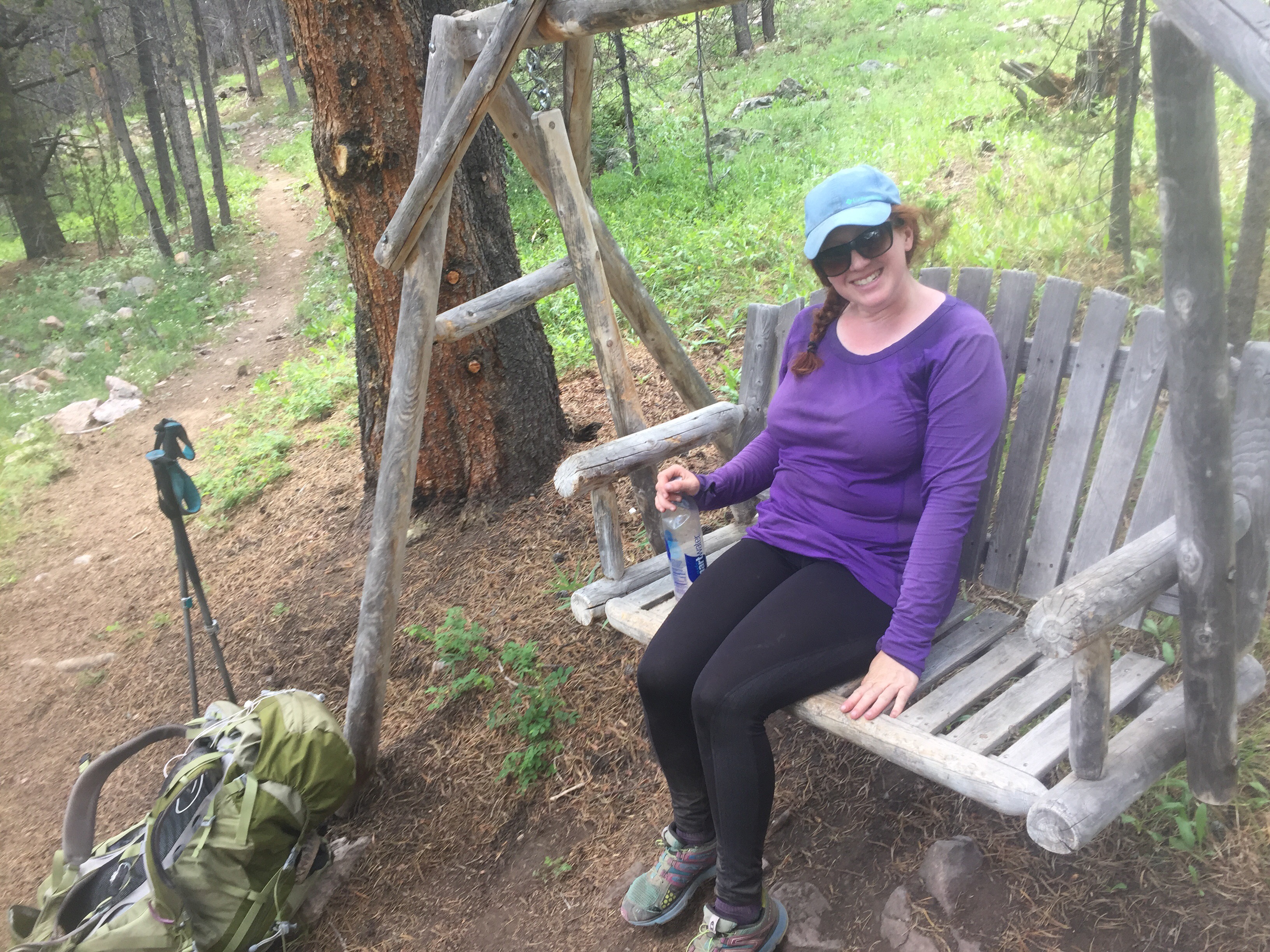 We all slept in until 8am in the most comfortable bed so far on trail. We borrowed the bikes and did a run to the post office then a food truck nearby. I had a delicious meal to give me strength for the hike out of town. Around 11, the three of us were hitching and within ten minutes we were riding back to Wolf Creek Pass. Lots of tourists taking photos at the sign so we took a few too then crossed the busy road avoiding the semis and huge RVs. I have 7 days of food in my pack along with an ice axe and microspikes. It takes some effort to throw it on my back. We began the first uphill climb into the San Juans. Epic views and wildflowers galore. We entered the Weminuche Wilderness which I’m told is one of the most beautiful places in the country. The first day sure did impress me! The trail was nicely maintained heading up and down various mountains onward to the next one in sight. Small ponds and lakes surrounded by rock boulders of varying size. At the higher elevations, marmots ran gracefully on the rocks as the pika squeak on top of rocks. Dark clouds loomed most of the afternoon. As we began the last big climb of the day, the thunder was booming so CC, PW, and I hid under some pine trees. They both cooked dinner as we stayed dry waiting out the storm. I left first continuing uphill and out of the trees to the beautiful views above tree line where I could see the trail for miles. As j reached the top and began descending the sun shone through the clouds giving me a special moment that took my breath away. I cruised along talking to the marmots and pikas with a huge smile and a full heart. These are the days I love. Little snow on the trail and cruising above tree line. I headed down where I found a campsite somewhat sheltered in the trees and began to cook dinner. They showed up a little later as we all set up camp. What a great day and we had hiked 15.2 miles out of town. I fell asleep warm next to Paperweight as we were both eager to see what tomorrow would bring.