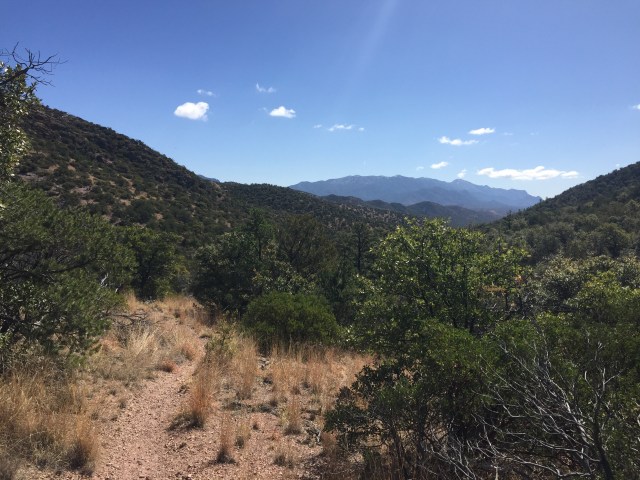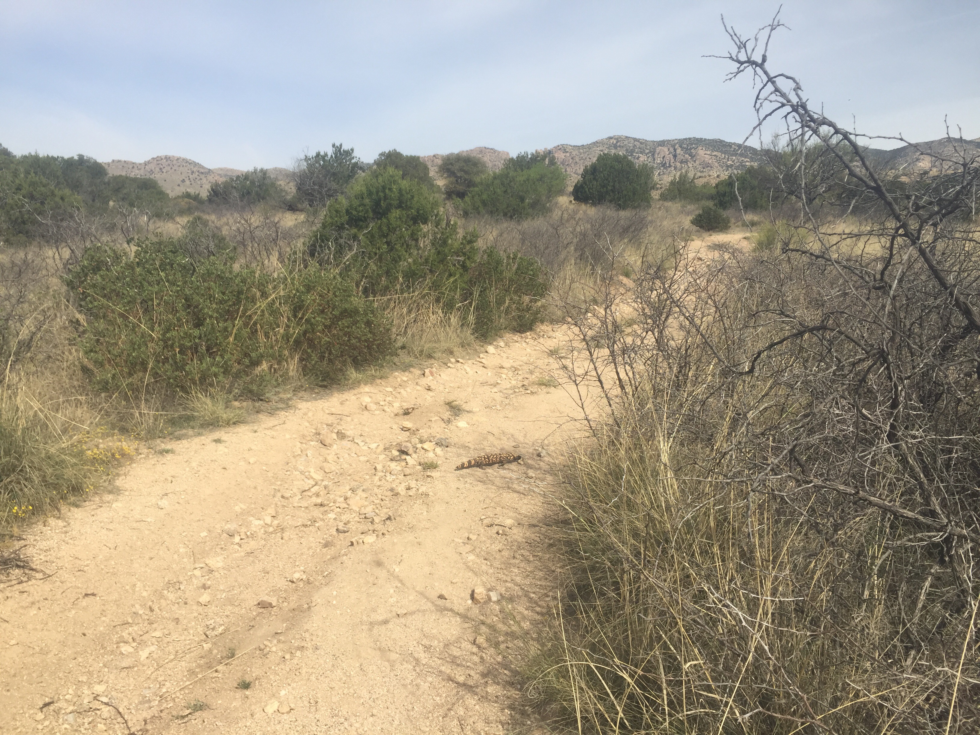 We had to take a break at the saddle and enjoy the 360 view. As I was heading downhill, I saw number three. Paperweight was behind me again and I started doing my little dance. It was another Gila monster walking along the Arizona Trail.