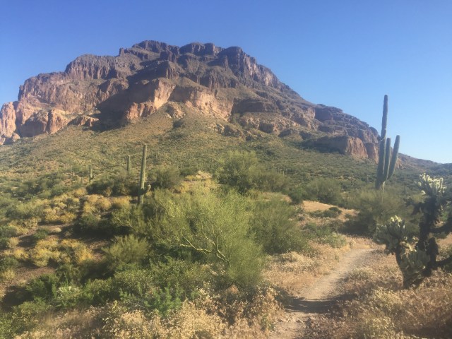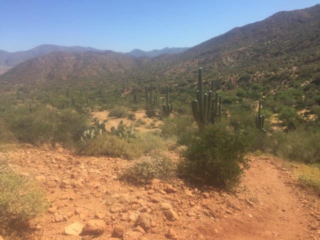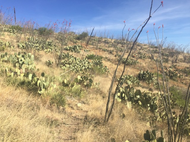 The trail curved around the desert for miles going up slowly then back down over and over. It was a pleasant temperature in the high 70s with a breeze most of the day.