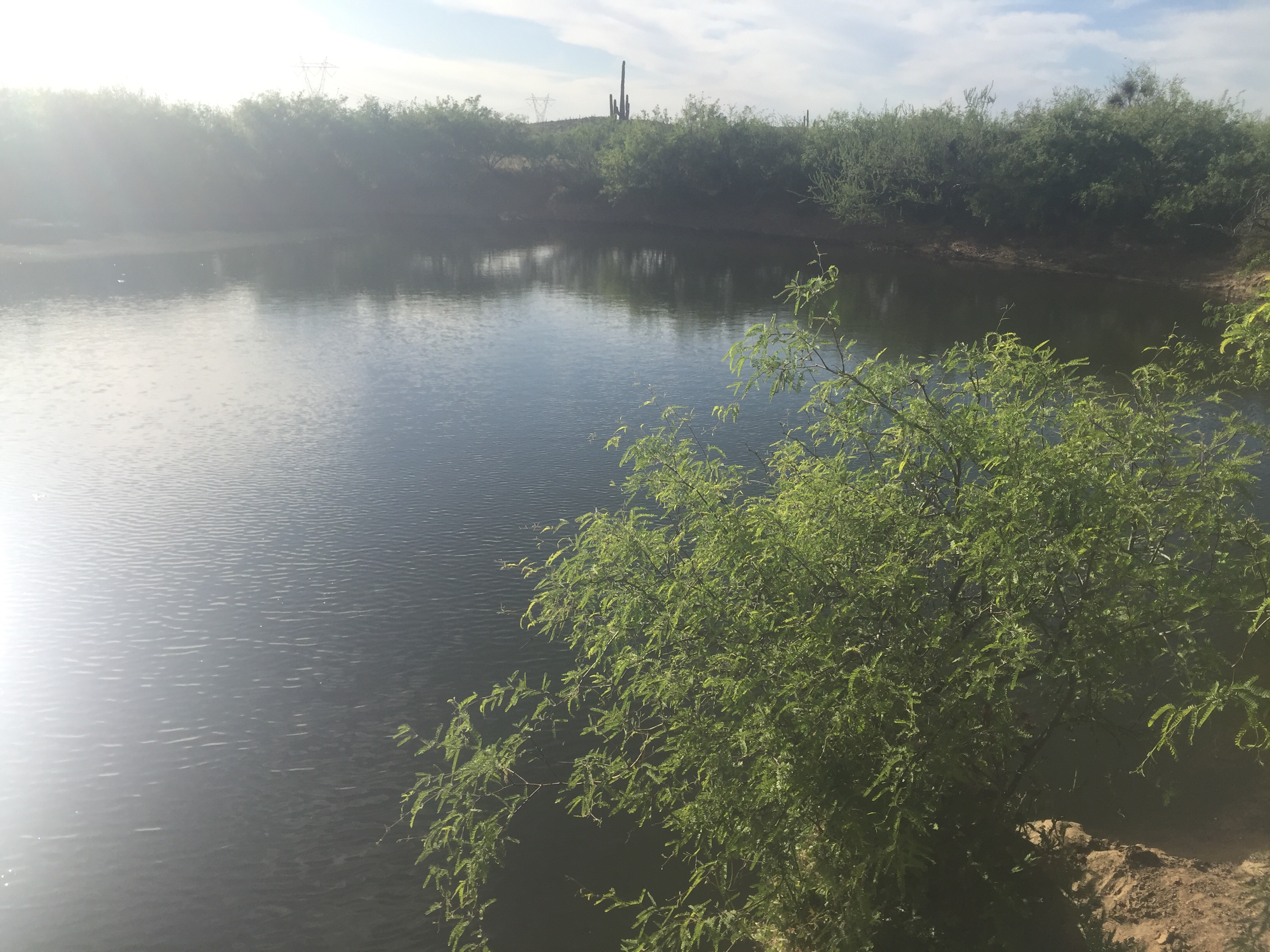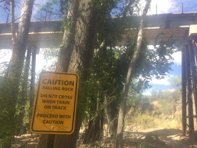 It was really warm out, but we didn’t need our umbrellas. We could see the train tracks for miles and bridges that crossed over the Gila River. Lots of greenery and a newly built trail.
