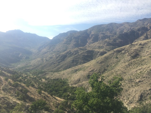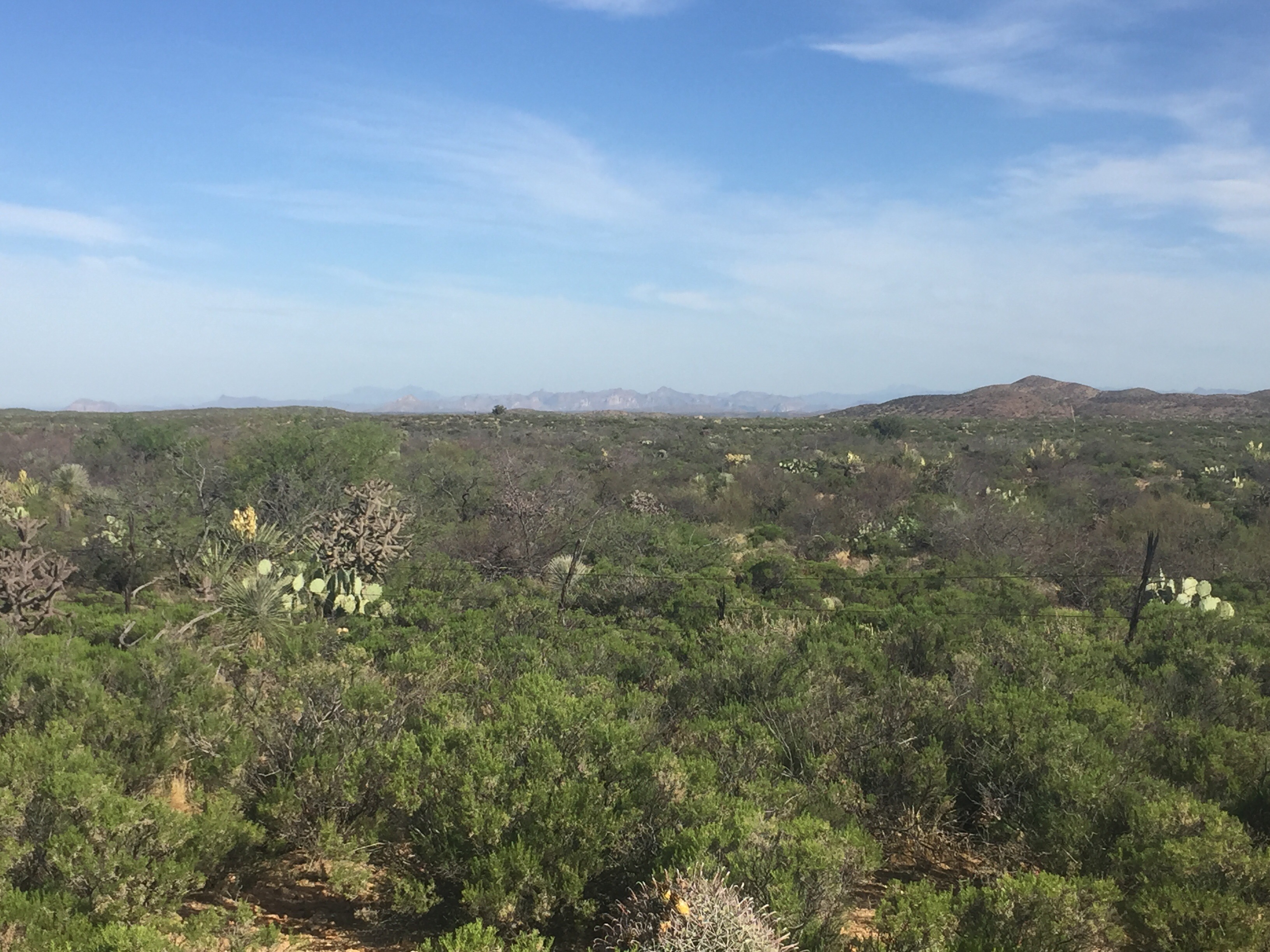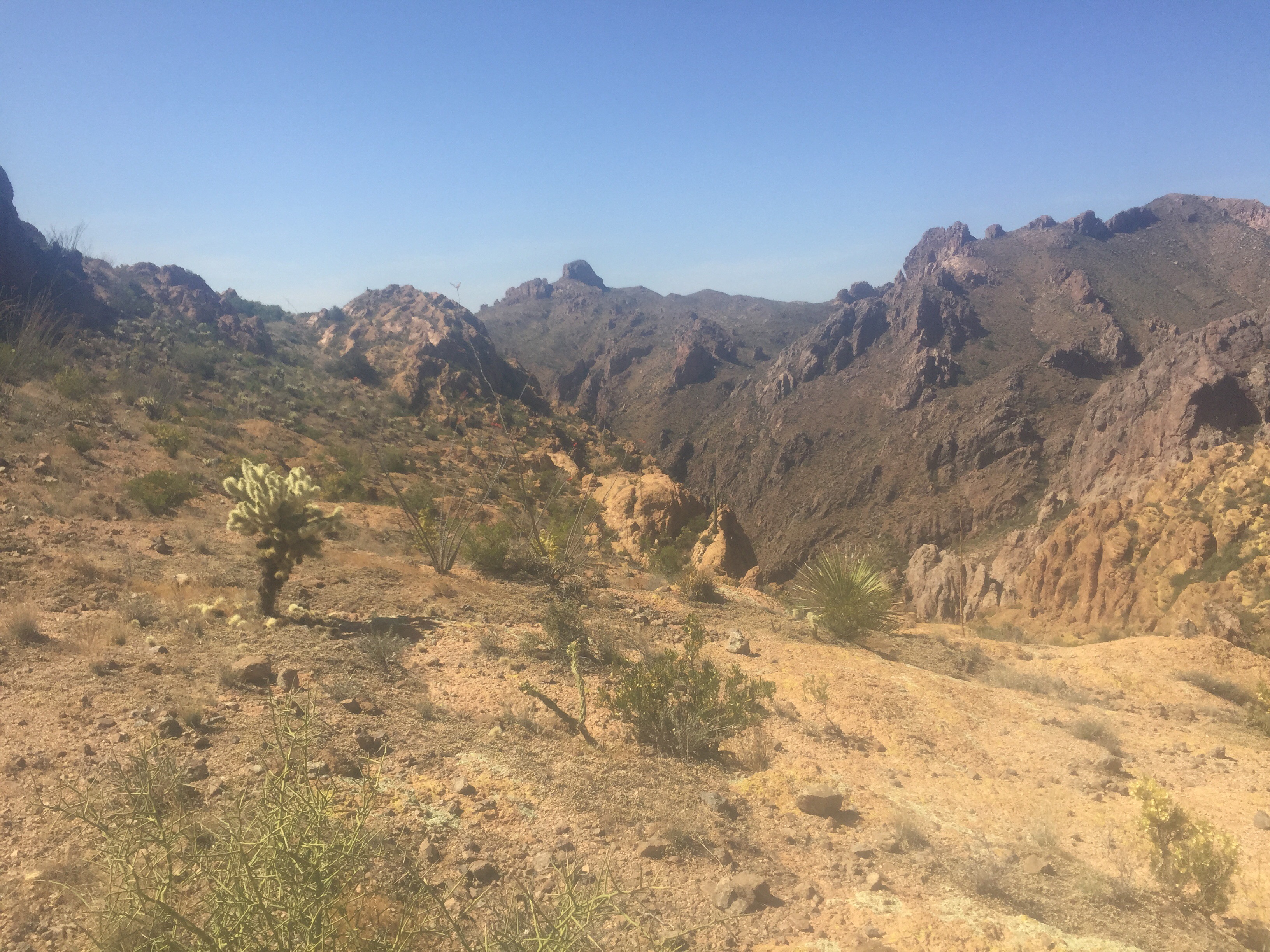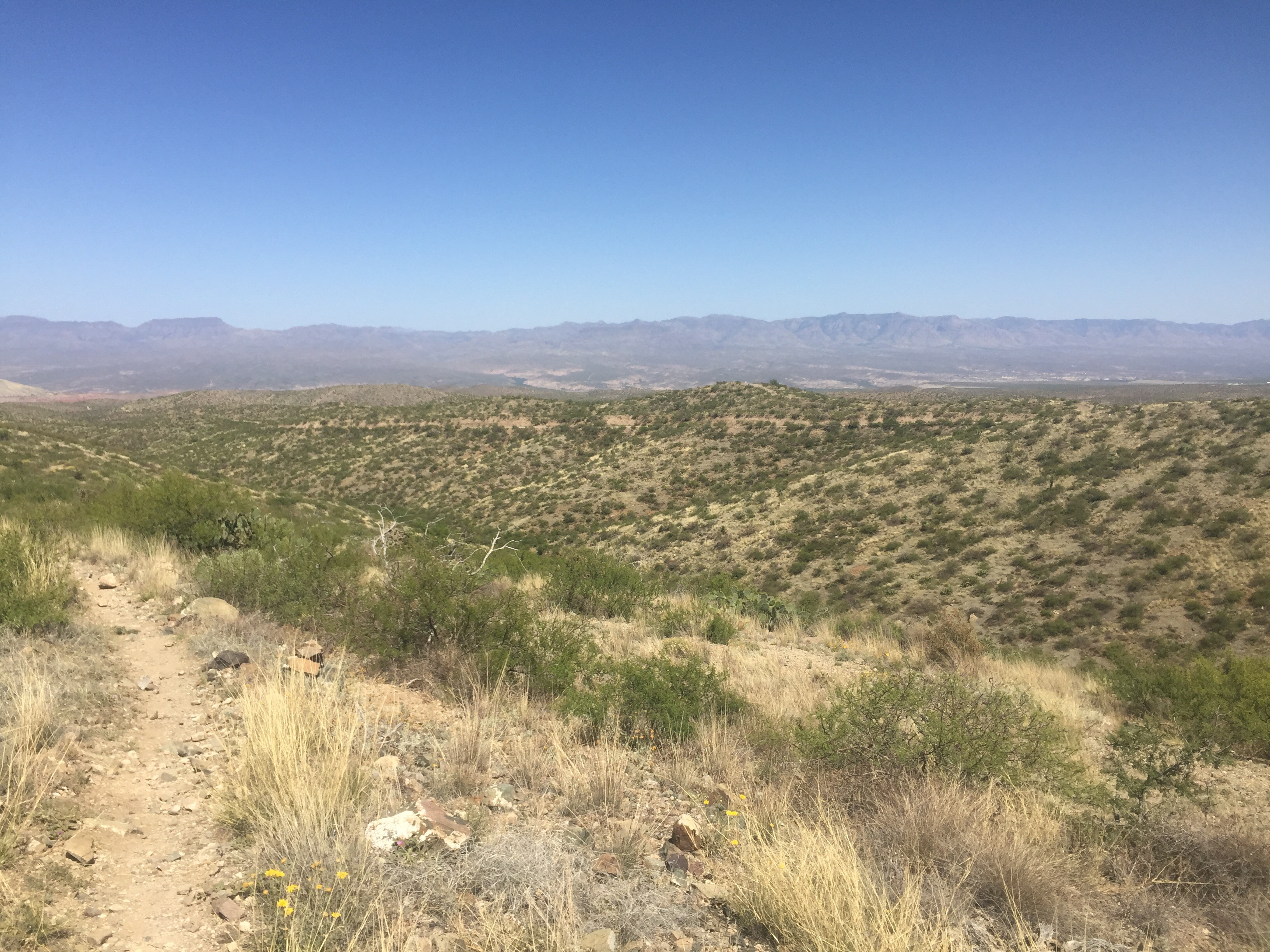 It was another early start like usual. We were exposed most of the morning and we could tell the temperature was going to get very high today. We climbed up hill towards a saddle to be rewarded with a new view including a peek at the town of Kearny and a huge mining operation.