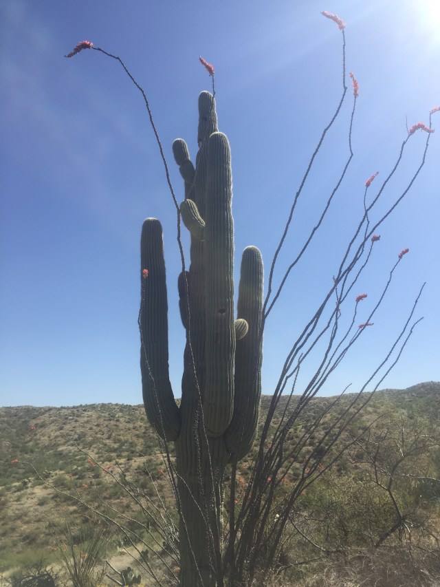 April 15- We truly enjoyed our zero day in Oracle yesterday. We had our left overs from dinner last night for breakfast today. You can’t go wrong with a crunchy chicken taco anytime of day! We both showered one last time and packed up our things. I had to say farewell to the kittens in the laundry room and Jim drove us back to the trail. We were at the trailhead around 9:00am. We are pretty proud of ourselves! Usually we don’t leave town until check out, but with the heat and being in the desert leaving in the afternoon isn’t a good idea.
