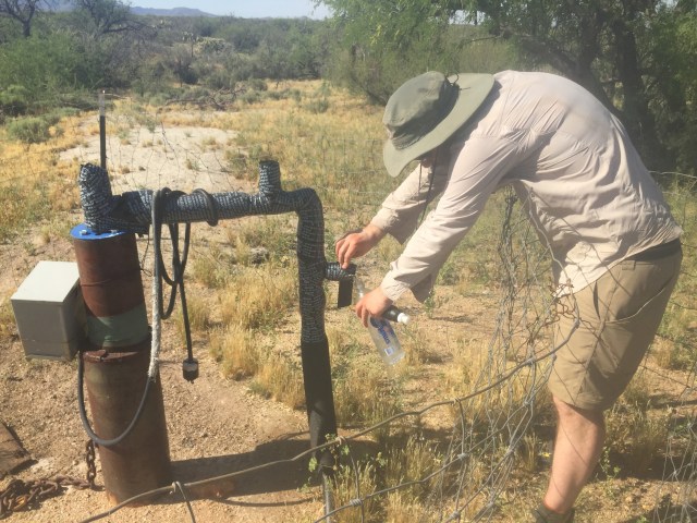 We offered the Arizona Trail Association to help in any way we could. So they gave us a few locations to try and find water. We took the mission and today had three resources to check out. The first one was .33 miles off trail and it was an old pump not plugged in, but we still got some water out of the pipes. The second one was a bushwhack to a collection tank with a huge pool of water also surrounded by bees. The last one is a stock tank that was fairly clear as no cows were swimming, but we had to crawl under a barbed wire fence. It was fun doing a little investigation together and hopefully helping out future hikers.
