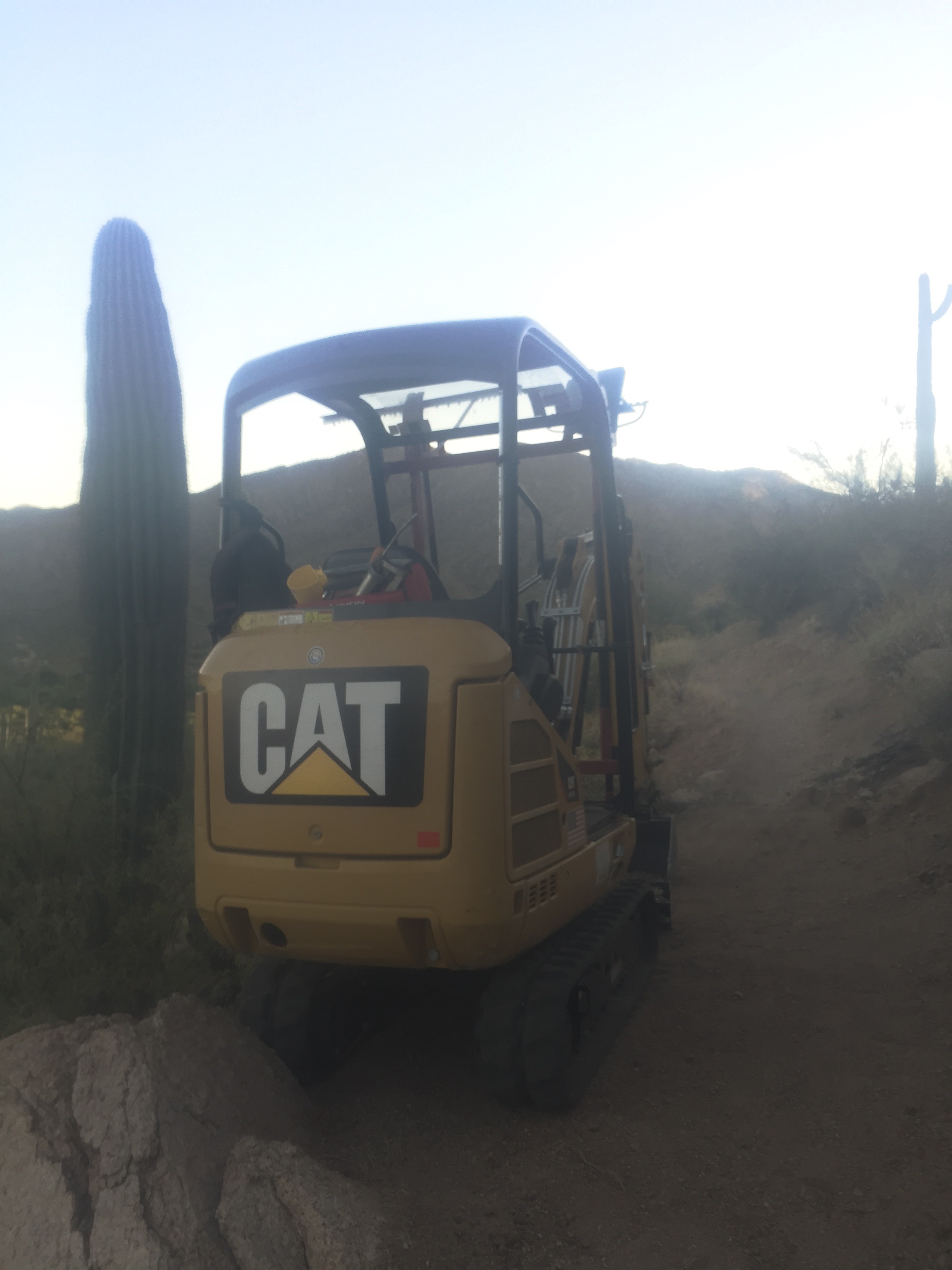 The trail was so wide do you could push a wheelchair along it. We came across the construction equipment they are using to widen the trail.
