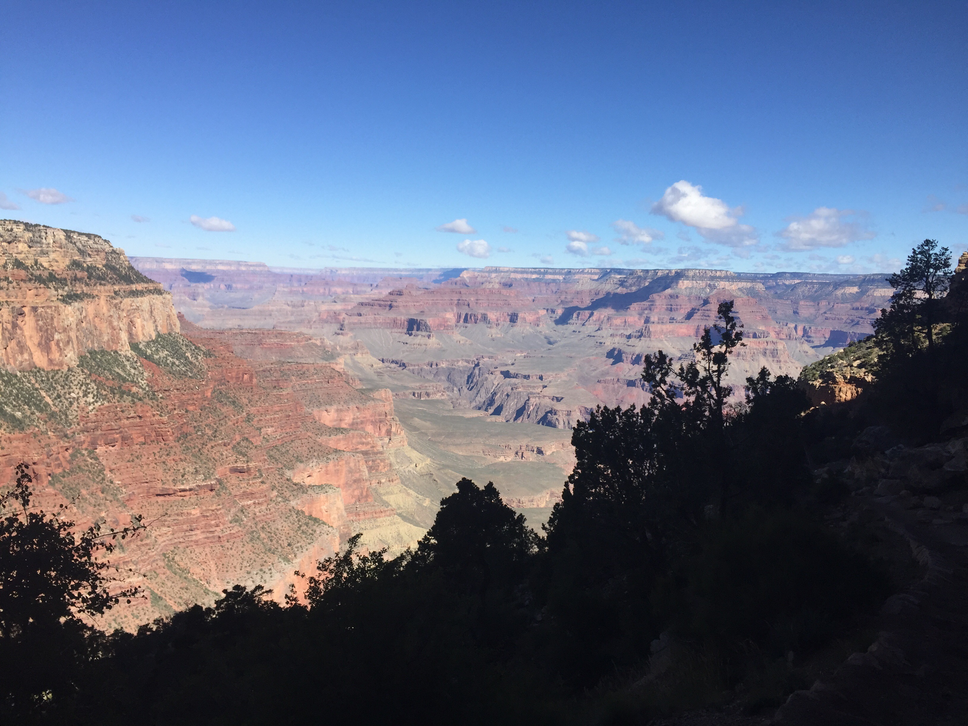 The views certainly did not disappoint. I was in awe and couldn’t take my eyes away from the Grand Canyon. The colors, rock formations, the crazy switchbacked trails, the birds flying about, the Colorado River down below us, and the size of the Canyon had me mesmerized. We walked along the rim for about 3.5 miles with our days packs so I felt like I was floating. We then rode along the shuttle to the last few stops getting off each time. It was a fun way to see the Western part of the South Rim.