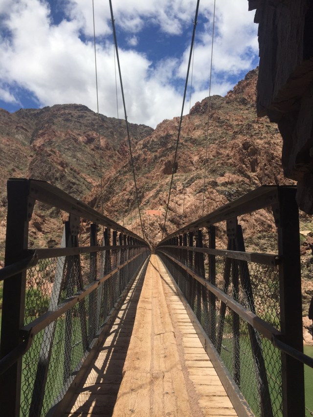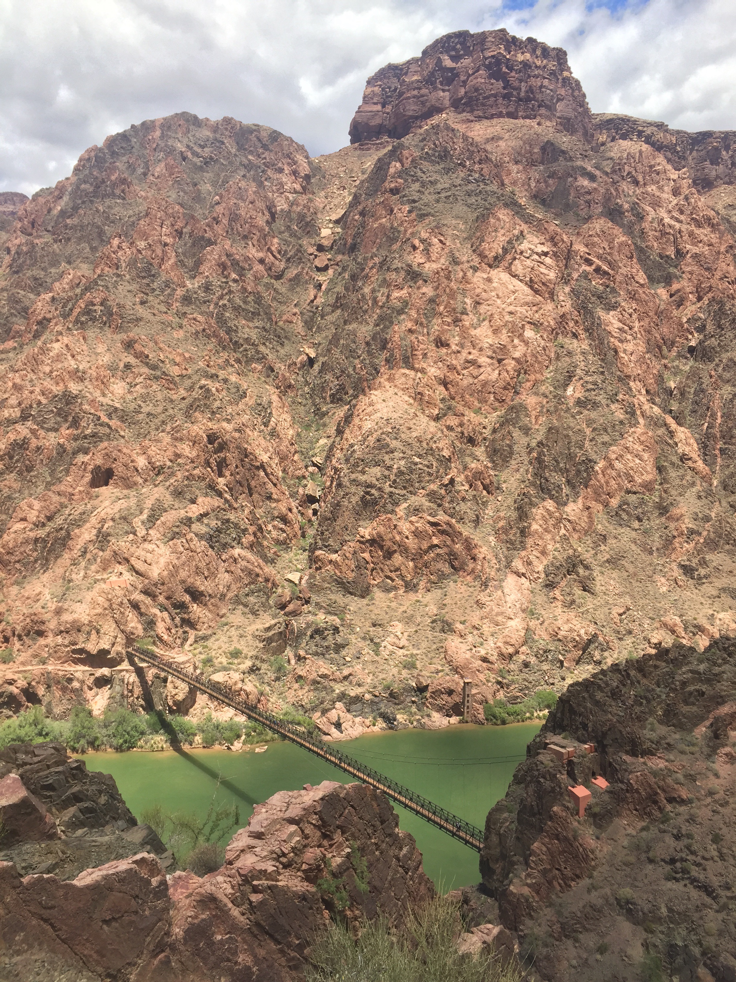 We came to the tunnel which is carved into a rock before entering the suspension bridge over the Colorado. The Colorado River is at 2,421 feet and today we did not feel too warm. If it was warmer, I am sure I would of went for a dip, but there was no need. We passed by Bright Angel Campsite. These spots are in a gorgeous location and I said this is where we should camp when we hike it again someday. People were lounging by the river with the large canyon walls surrounding them.