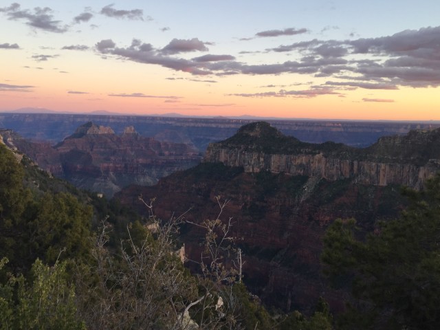 I was exhausted after this section and we did our typical town chores. We got a stunning campsite near the ridge of the North Rim, showered, did laundry, picked up our mail drops, feasted on a large pizza, and sat in large wooden chairs overlooking the Grand Canyon. What a day! We finished it up by sitting on a bench drinking beers and watching the sun set over the canyon. I loved this section and am so happy to share this experience with my hiking partner turned love of my life. I look forward to us visiting again someday!