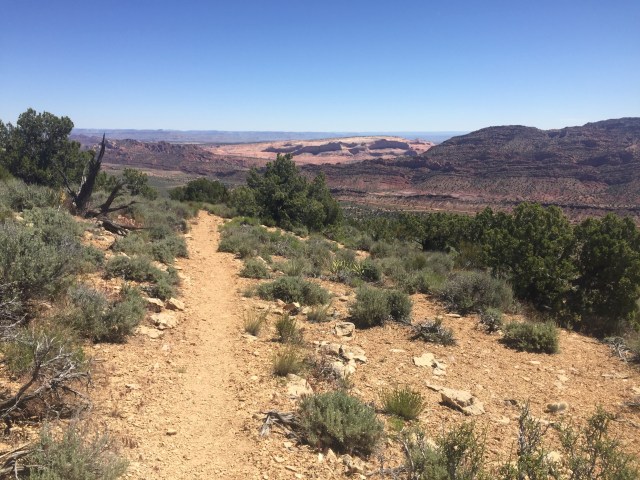 By the time we made it to the pump house which is a water source and bathroom along the trail we were running into lots of other hikers. We had to wait in line to us the bathroom before more uphill. I let Paperweight go ahead of me as I took it slow and steady. The trail slowly winds uphill on the edge. I can only imagine all the work it took to build this trail. Large yucca trees were blooming along the way. My legs were feeling the burn all the way.